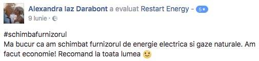 Un prieten mi-a vorbit despre Restart Energy. Pentru mine, prețul a fost un element hotărâtor în alegerea de a-mi schimba furnizorul de energie. Am ales această firmă pentru că îmi inspiră încredere. Facturarea este corectă și punctuală lună de lună. Recomand schimbarea furnizorului!